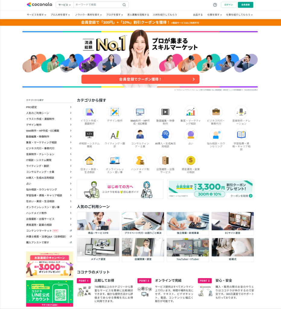 【PR】ココナラ 今回は、クリエイターへの制作依頼から個人のお悩み解決までできる、スキルのオンラインマーケットについて紹介します!オンラインで完結するため、外出することも相手に会うこともなくサービスの提供が受けられます。 検討や依頼から納品まで、すべてネット完結 ・制作サンプルやレビューが掲載されているので比較が簡単にできるそうです。個人やフリーランスと直接取り引きできるので無駄なマージンがかからず業者と比べてお得でおすすめです! 詳細はこちら、下記バナーをクリック↓↓ 詳細はこちらをクリック おすすめ商品 オンライン家庭教師4,500 円(60分) 小学生~社会人を対象にオンラインで勉強方法、学校生活の悩み、受験相談、わからない問題など幅広く対応していただくことが出来るそうです!数学・理科について学びたい方におすすめです。 オーダーメイドのぬいぐるみ製作70,000 円 「似顔絵をぬいぐるみにして贈りたい」 「ぬい撮りを楽しみたい」1点からの完全オーダーメイド。 直接やり取りできるため、相談がスムーズなところがおすすめです。 おすすめ情報 商材名 ココナラ運営者 (M.A)※当サイトはアフィリエイトプログラムを利用し宣伝目的で作成しております。